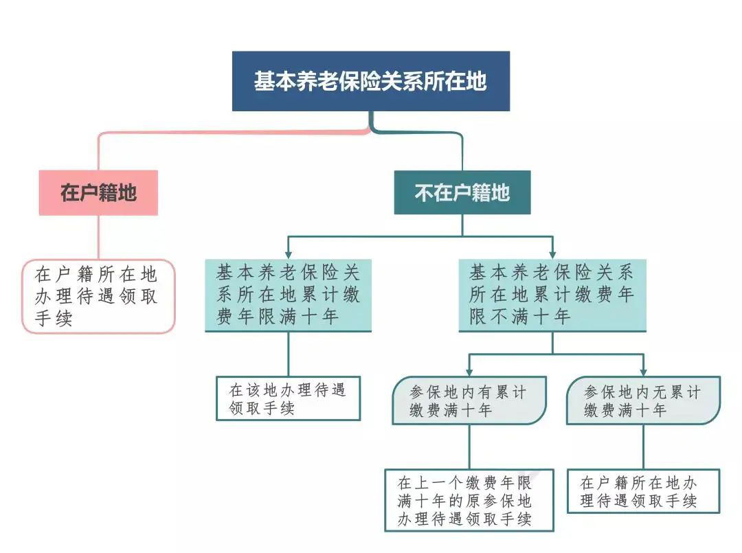 政策依据:基本养老保险关系不在户籍所在地,且在每个参保地的累计缴费年限均不满10年的,将其基本养老保险关系及相应资金归集到户籍所在地,由户籍所在地按规定办理待遇领取手续,享受基本养老保险待遇。