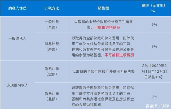 人力资源外包计税方法、销售额、税率(征收率)
