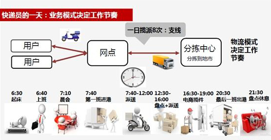 可能我们见到的快递员更多的是,送货上门或者在驿站分发快递的那种类型。但快递员一个正常的流程基本上是上面那张图所展示的。
