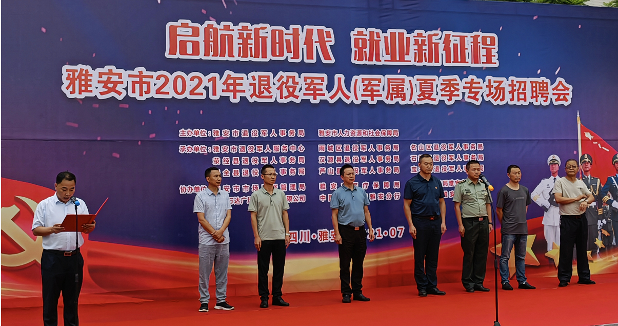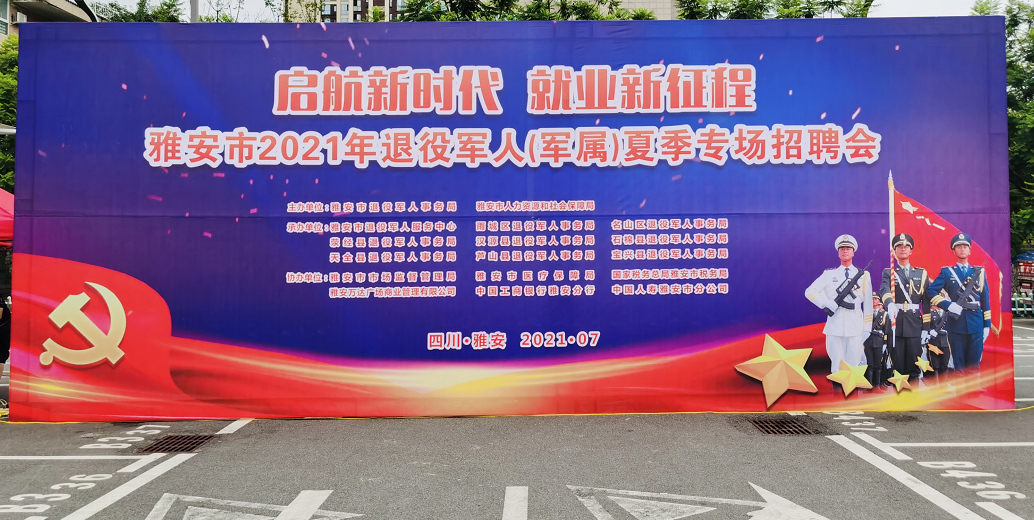 2021年7月29日,雅安市2021年退役军人(军属)夏季专场招聘会在雅安万达广场隆重举办。四川宝航人力资源管理有限公司(以下简称宝航人力集团)受主办单位雅安市退役军人事务部、雅安市人力资源和社会保障局邀请,参加了以“启航新时代,新业新征程”为主题的线下退役军人夏季专场招聘会,旨在为拓宽退役军人就业渠道,实现企业人才需求与退役军人就业需求的有效对接,助力就业新起航。