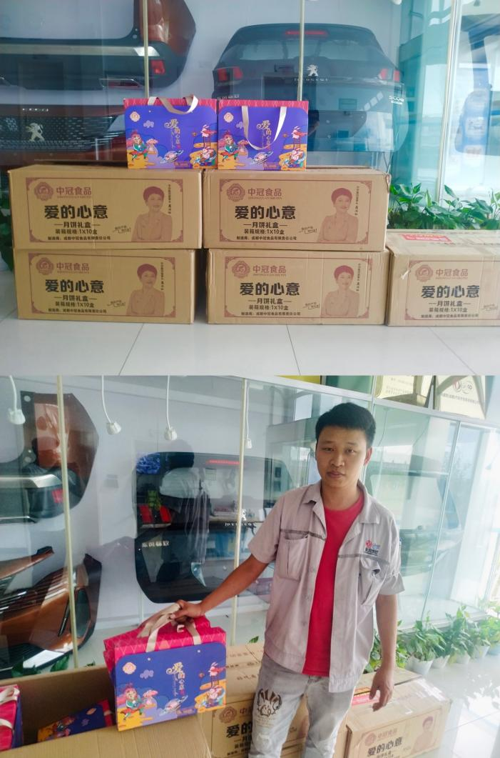 同一时间,四部的运营人员也将这份中秋礼品送到了东风彼欧以及丰田纺工厂的各位劳务员工手中。